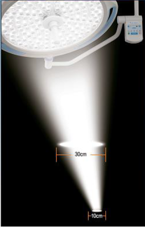 Do đó cho phép vừa tập trung ánh sáng ở 10cm để chẩn đoán chính xác, vừa cho phép có được tầm nhìn của khu vực thao tác lớn hơn.